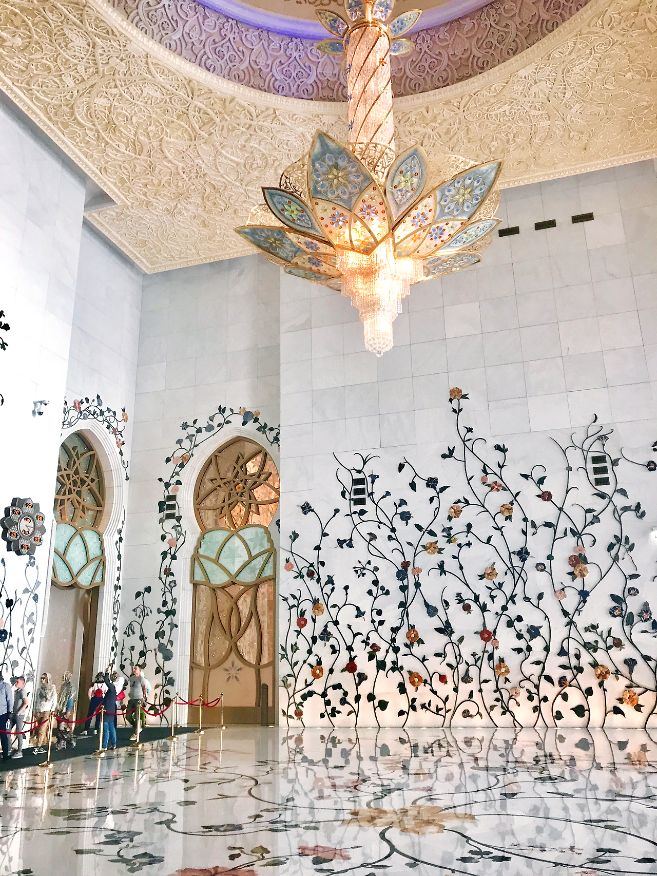 사진을 찍을만한 포인트는 구성 재료와 크기가 남다른 샹들리제, 세계 최대의 크기를 자랑하는 페르지안 융단 카펫, 해가 비치는 사원에서 대리석이 반사되어 마치 하얀 구름 안에 들어와 있는 듯한 사원 중앙 부분, 불빛이 어우러진 저녁의 사원의 전경 정도로 요약할 수 있다.