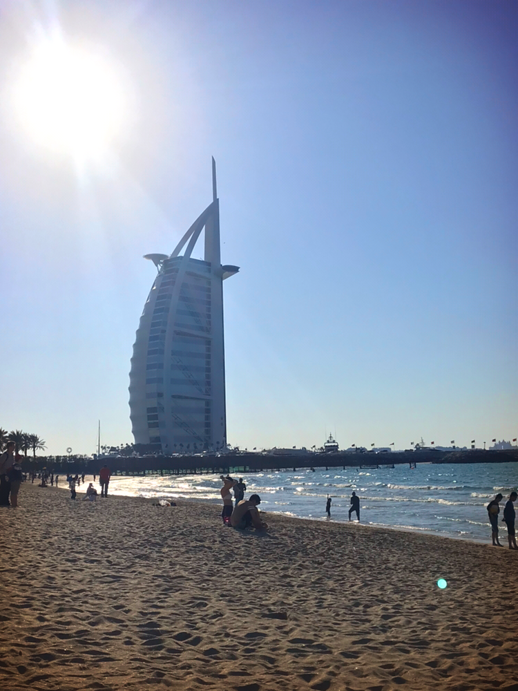 버즈 알 아랍이 보이는 곳의 해변가. 아침 조깅을 하기에도 좋지만 해질녘쯤에 가서 해수욕을 하다가, 바닷가를 거닐며 버즈 알 아랍 뒤로 펼쳐지는 두바이 하늘의 아름다움을 감상할 것을 추천한다. 사실 메디낫 숙과 쥬메이라 비치 둘 다 해질녘이 예쁜 편이라 사진을 보고, 취향에 맞춰서 시간을 바꿔서 이동해도 크게 상관은 없다.