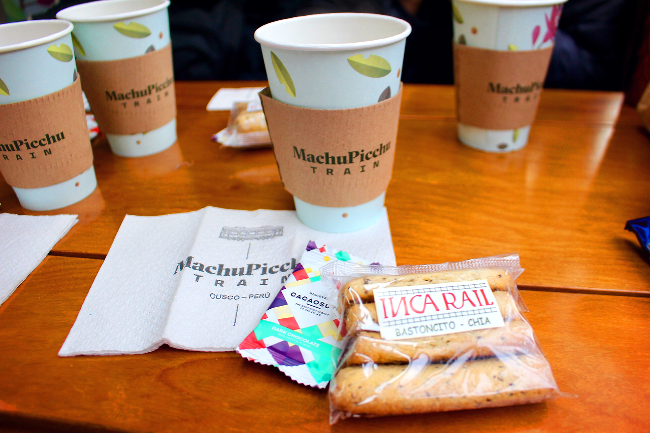 마추픽추로 가는 기차 TIP : 기왕 비슷한 가격이라면 잉카 레일(Inca Rail)을 강력 추천한다. 기차역으로 들어오는 길 왼쪽에 무료로 마실 수 있는 차와 간단한 과자 부스(booth)가 있으며, 기차 내에서도 음료 서비스 및 과자를 제공하고 있다. 제공되는 과자, 음료, 초콜릿이 다 맛있어서 나름 기차 맛집이라고 할 수 있다. 덧붙여, 마추픽추로 갈 때는 왼쪽, 돌아올 때는 오른쪽에 앉는 편이 경치를 감상하기에 좋다.