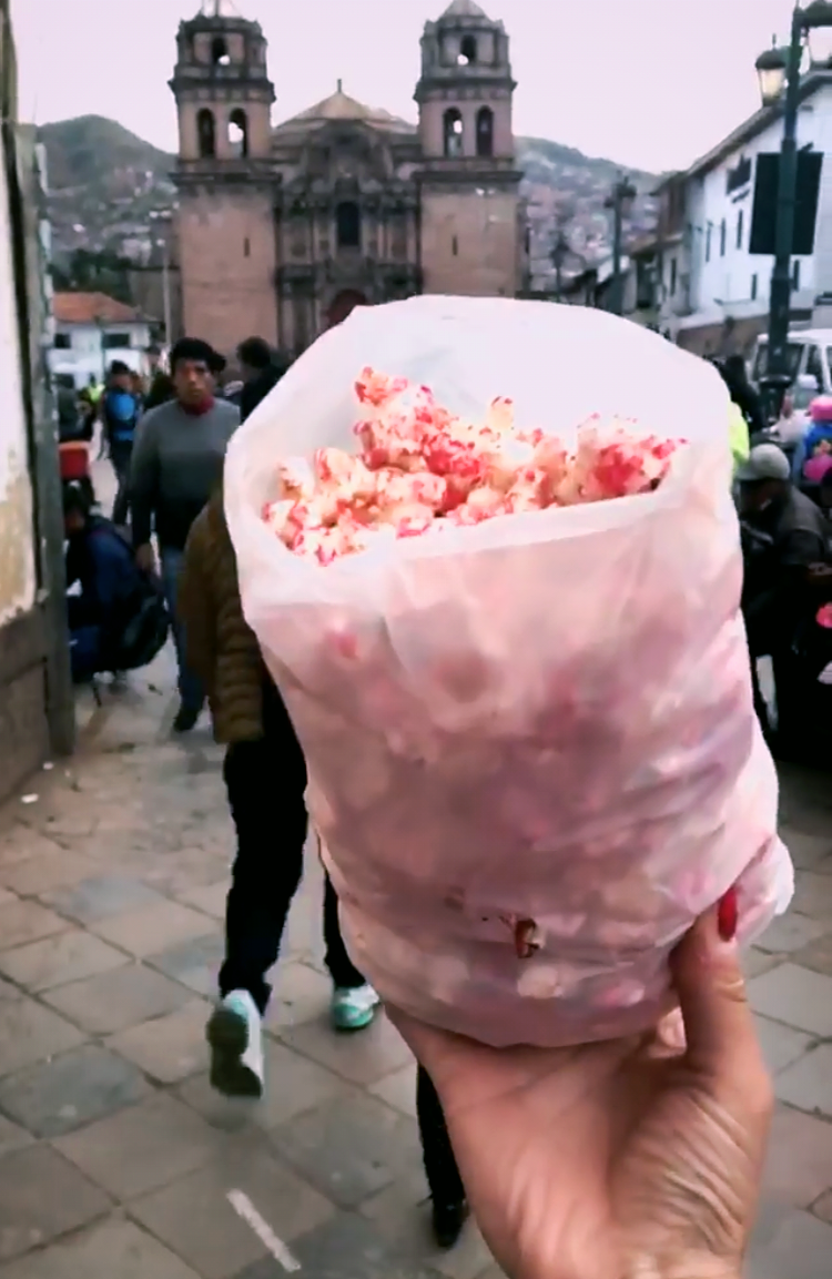 하나는 산 페드로 시장 입구 맞은편에 위치한 팝콘. 치차모라다 가루를 넣어서인지 보랏빛 분홍색을 덧입은 팝콘은 그야말로 한 번 손대면 멈출 수 없는 단짠의 향연인 것이다. 두 번째는 시장에서 아르마스 광장으로 가는 길에 위치한 작은 가게 ‘도니도나(Dona Donny)’에서 파는 꽈배기 맛의 츄로스이다. 바삭하고 쫀득한 츄로스 안에 채워져 있는 달달한 필링은 고소한 츄로스의 맛을 한껏 끌어올려준다.