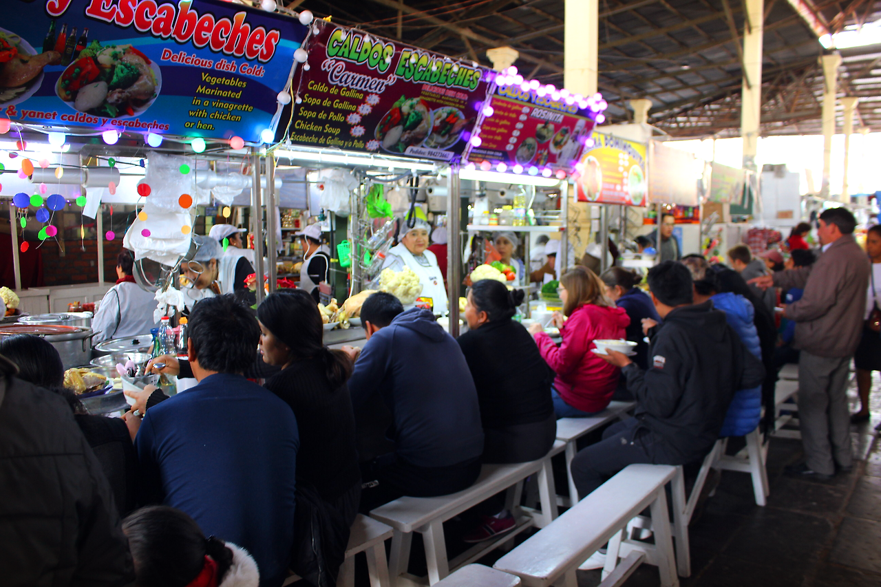 쿠스코 곳곳에는 지역 시장이 주중, 주말 스케줄에 따라 수시로 열린다. 그중 가장 대표적인 곳은 산 페드로 시장!! 가장 큰 규모인 페드로 시장에는 각 종 기념품뿐만 아니라 생필품, 신선한 과일과 채소 그리고 먹거리까지 찾아볼 수 있다. 앞서 말했던 성계 투어에 포함된 친체로에 갈 계획이 없다면 이곳에서 기념품을 사는 것을 추천한다. 물론 과하지 않은 흥정은 필수이다. 특히 알파카 제품이나 망토류는 실의 짜임새나 크기, 디자인, 알파카 털의 질 등에 따라 가격이 천차만별이니 많은 상점을 돌아보며 대략적인 시장 가격을 파악한 후에 사도록 하자.