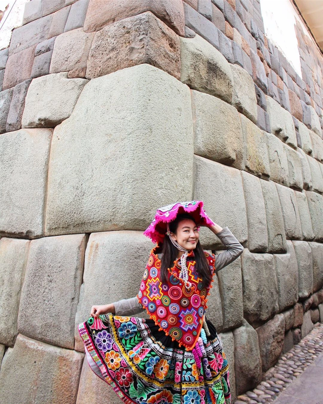 쿠스코의 상징처럼 여겨지는 이 12각돌(Twelve angled stone)은 한치의 오차 없이 모서리와 모서리를 이어가고 있는 커다란 돌들 사이에서 큰 돌 하나가 12개의 모서리를 지니고 돌 사이에 맞물려 있어 보는 이로 하여금 감탄을 자아내고 있다. 틈새 없이 쌓아져 있는 돌들을 보고 있노라면 그 어떤 테트리스 천재도 감히 대적하지 못할 것 같은 느낌마저 든다. 이쯤에서 등장하는 *Jennifer의 Tip!! 12각돌을 뒤로 등진 상태에서 오른쪽으로 조금 걸어가면 모퉁이에 작은 기념품 가게가 있다. 물론, 손님을 더 끌기 위한 일종의 ‘호객 이벤트’겠지만 무료로 전통의상 체험이 가능하다는 사실!! 친절하게 알파카 인형과 옷을 협찬해준 상점에서 센스 있게 작은 기념품을 사주는 것은 당신의 선택이다.