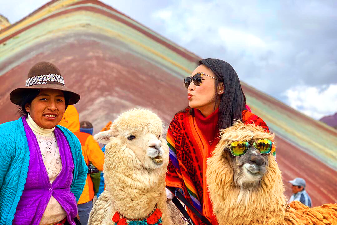 왼쪽은 우리가 SNS에서 많이 보던 바로 그 장소. 소량의 팁을 주면 알파카와 재미있는 컨셉 사진을 찍을 수 있다. 여기서 관건은 수많은 인파 사이에서 붐비지 않는 것처럼 사진을 찍는 것!! 이는 의외로 간단하다. 사진을 찍는 사람이 조금 다리를 구부려 아래쪽에서 찍어주면 감쪽같이 내 몸이 방패막이가 되어 많은 인파들이 가려진 인생 샷을 완성할 수 있다. 물론 요즘은 간단하게 어플로 지울 수도 있지만 수작업을 귀찮아하는 나로서 가장 애용하는 방법!!