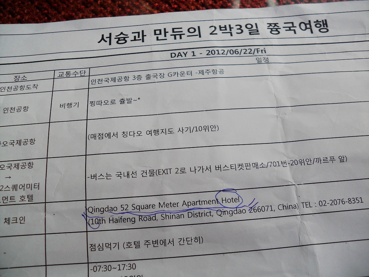 출발하고서야 우린 이 차가 택시가 아니라는 걸 알아챘다. 택시 아닌 승용차를 잡은 게 영 이상했지만 그래도 이때까진 괜찮았다. 왜냐면 막 칭다오에 도착한 여행자의 설렘이 모락모락 꽃 피고 있었으니까. 하지만 분위기는 심상치 않은 방향으로 흘러갔다. 유쾌하고 호탕한 친구가 여행책자의 맨 마지막 장을 펼치고, 대화를 시도했다.