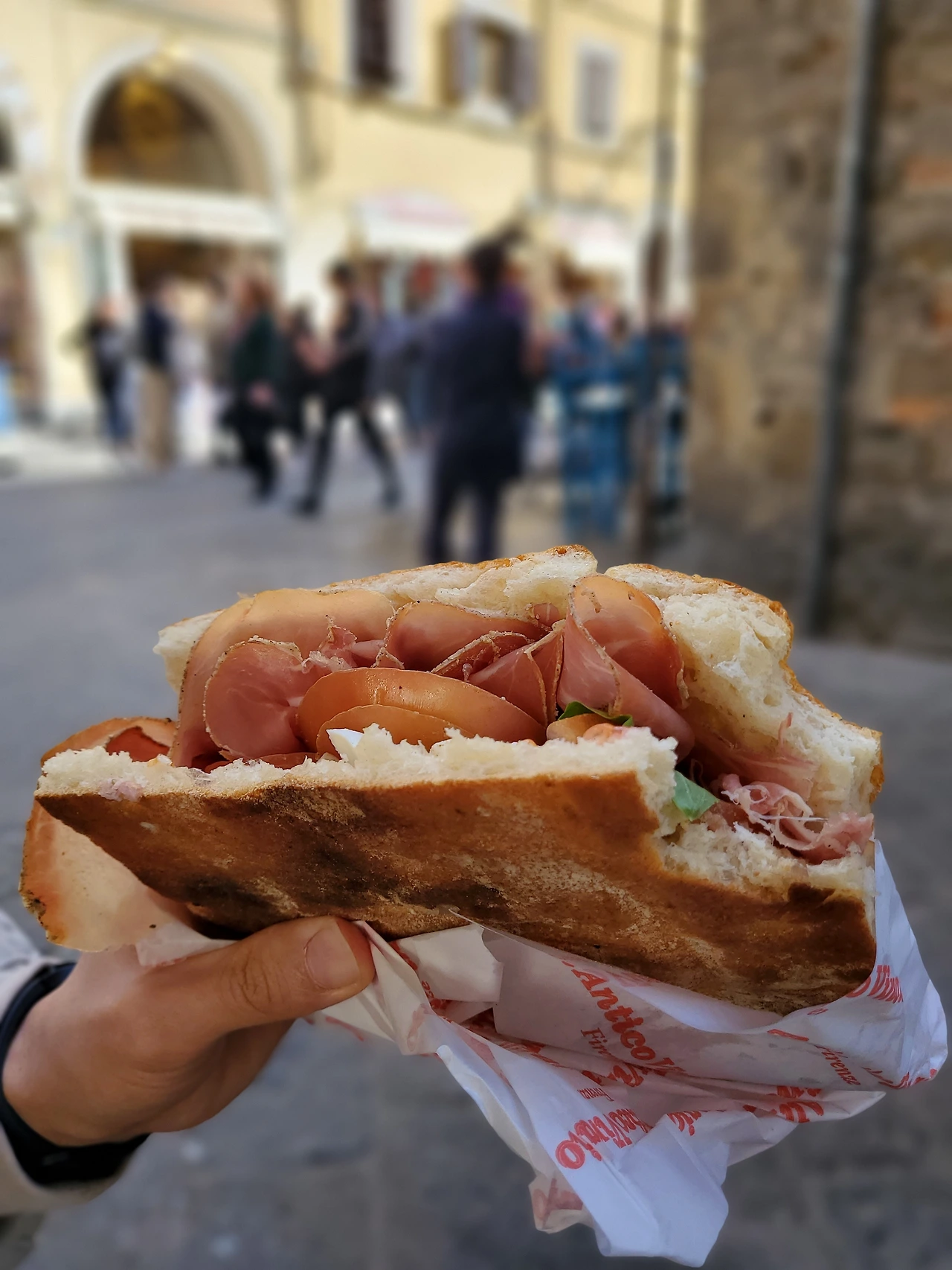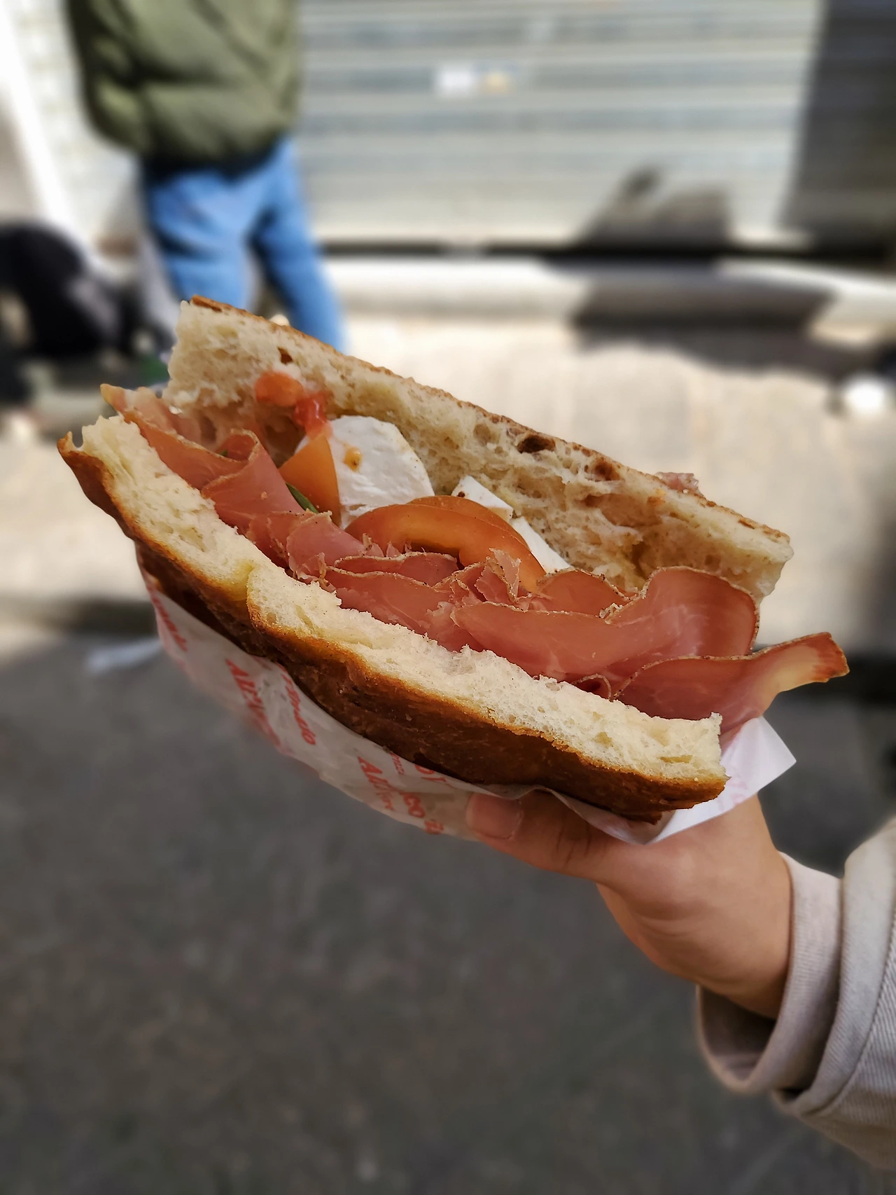 스키아차타로 만든 비나이오 vinaio 의 샌드위치는