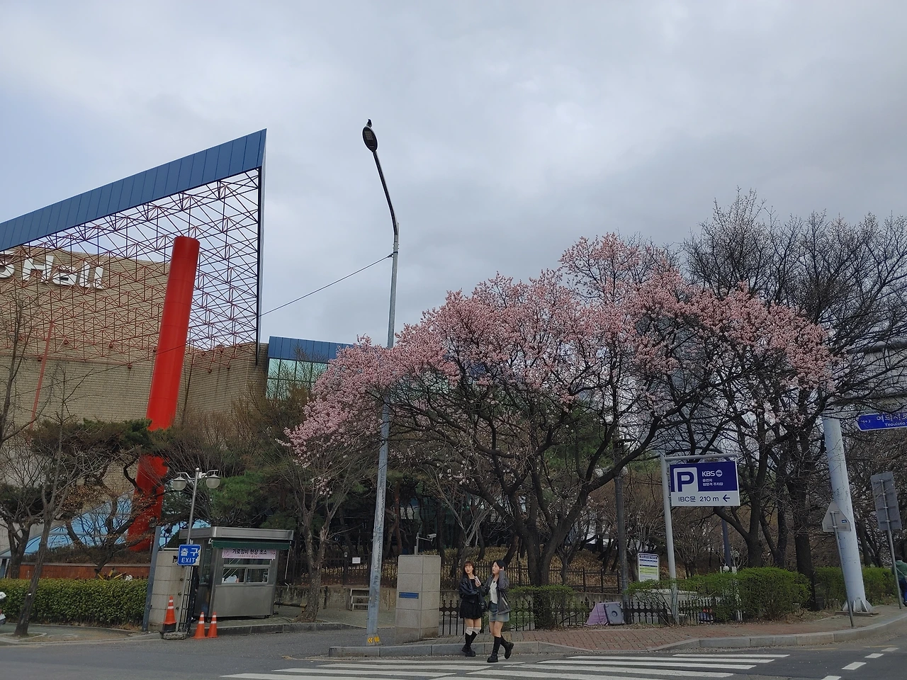 한국무용은 한번 공연이라도 할라 치면 챙길 짐이 많다. 한복치마를 풍성하게 해 줄 속치마가 2개, 가짜 머리와 비녀, 속두리까지 이것저것 합하니 양손 가득 둘러매야 한다. 긴장된 마음에 짐까지 잔뜩 들고 나니 대회에 나간다는 게 실감이 났다. 같은 대회에 참가하는 언니와 이동하는 차 안에서 편의점 김밥을 나눠 먹으면서 이른 저녁을 대신했다. 3월의 마지막날이라 한낮에는 봄날이었고, 가로수에 핀 벚꽃 덕분에 잠깐이지만 봄 소풍을 가는 기분이 들었다.