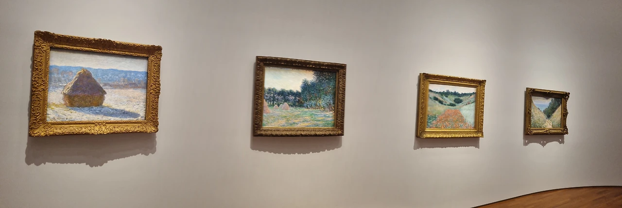 둥근 전시장 가벽을 따라 모네의 그림들이 쭉 걸려 있었다. 오른쪽으로는 네 점의 육지 그림이, 왼쪽으로는 바다 그림이 네 점 있었다. 아주 잠깐 시공간이 멈췄다. 그 아름다움에 숨을 참게 됐다.