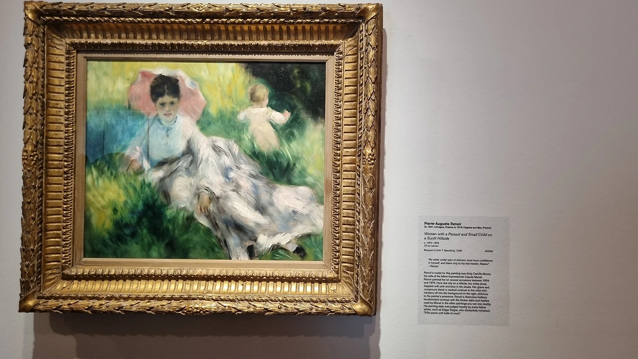 Pierre-Auguste Renoir: 부드러운 깃털과도 같은 선을 써서 foreground의 대상이 background와 접하는 부분이 마치 촘촘히 짜인 모직물 같은 기분이 든다. 휙휙, 가볍게 그은 색들이 늘어진 솜뭉치처럼 그림 속에서 흔들거리는 듯한 느낌이다.
