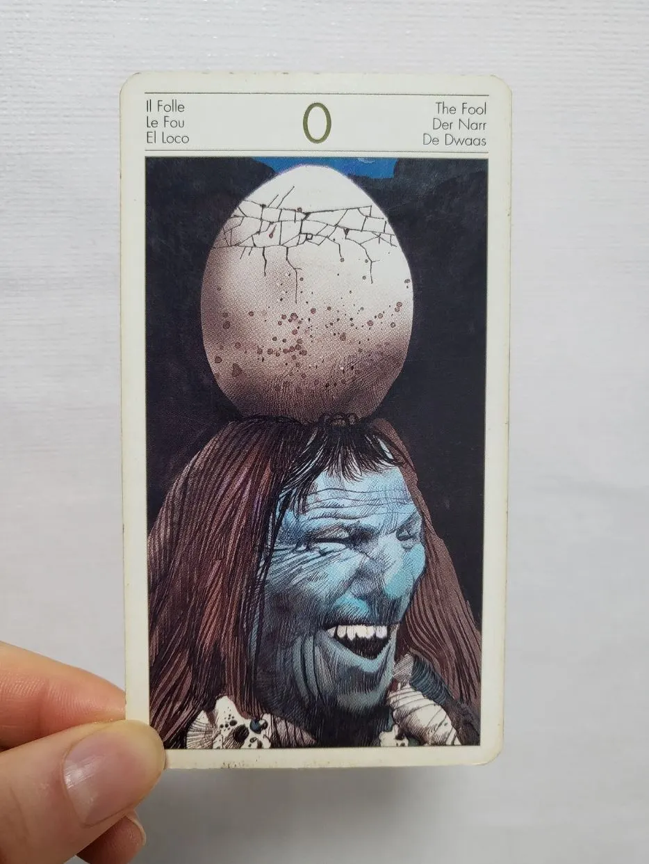 타로 카드에도 이 0번 카드가 있는데 'the fool(바보)'카드이다. 대부분의 이 바보카드는 가벼운 짐을 들고 여행을 떠나는 바보가 그려져있는데 내 카드는 알이 깨지기 직전 세상의 시작을 암시하는 그림이 그려져있다.