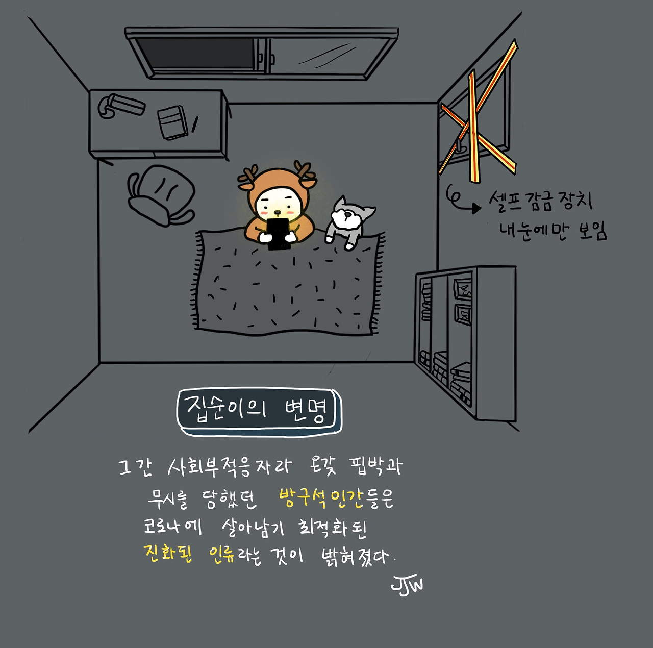 혼자 있음은 달라지지 않았지만 누군가로부터 숨는 것이 아니라 혼자있는 걸 좋아해서 혼자있다는 점은 달라졌다. (같이 있는 것이 좋으면 언제든 같이 할 것이다.)