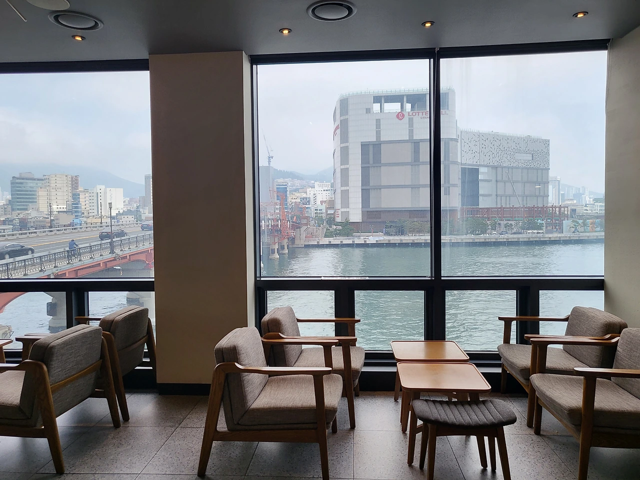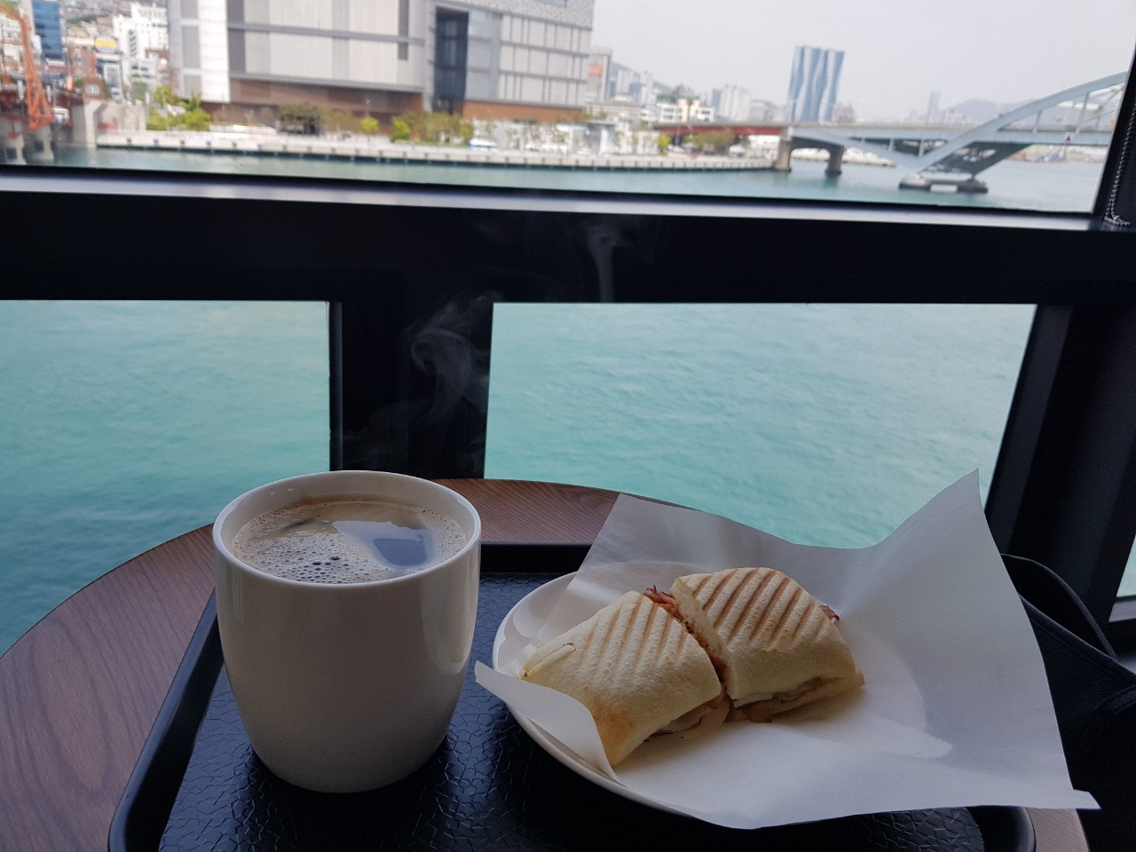 가끔씩 점심을 해결하던 영도대교 옆 스타벅스. 좌측에 영도 다리와 멀리 용두산 타워가 보인다. 매주 토요일 오후 다리가 열리는 도개 행사가 열리는데 괜히 잘 못걸렸다간 15분간 발이 묶이니 시간 확인을 잘 해야한다.