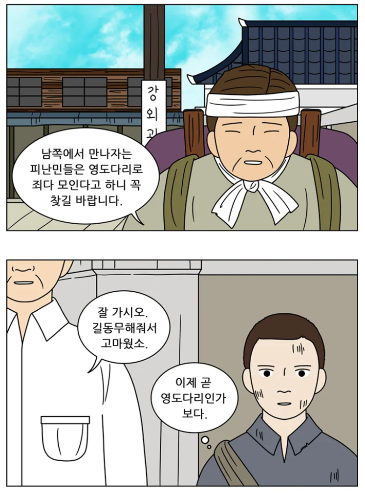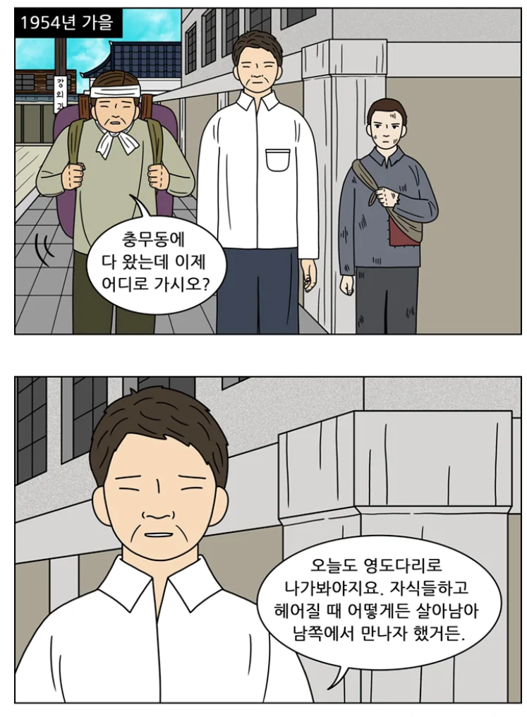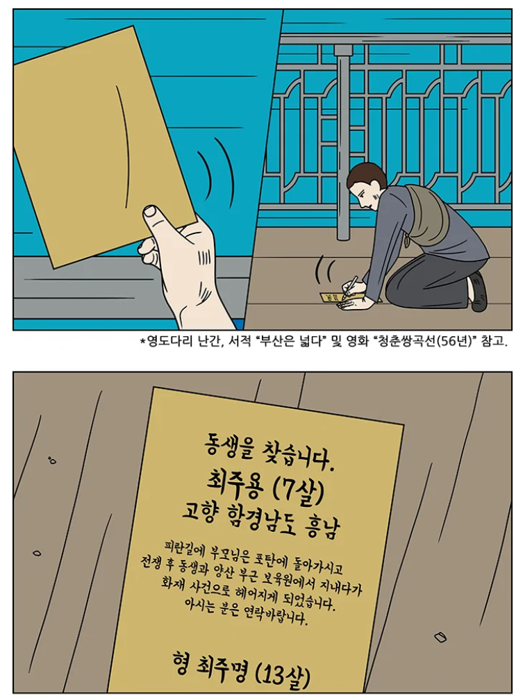 피난 중 동생을 잃어버린 주인공도 영도다리에 오게 되는데…