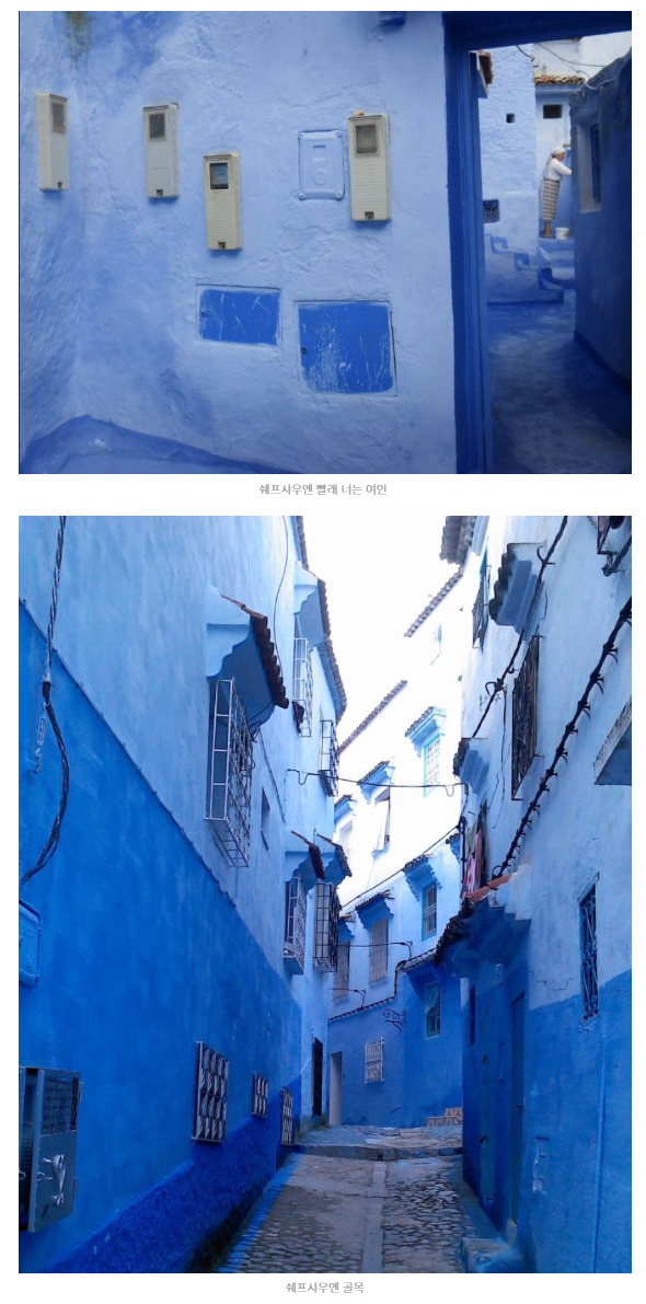 흰여울마을은 부산의 산토리니라 불리기도 하는데 나는 흰여울길을 걸을 때마다 모로코의 작은 마을 쉐프샤우엔이 생각난다. 쉐프샤우엔은 온통 몽글몽글하게 푸른색으로 칠해진 정감 있는 마을로 푸근하고 소박한 분위기가 영도 골목길과 똑 닮았다.