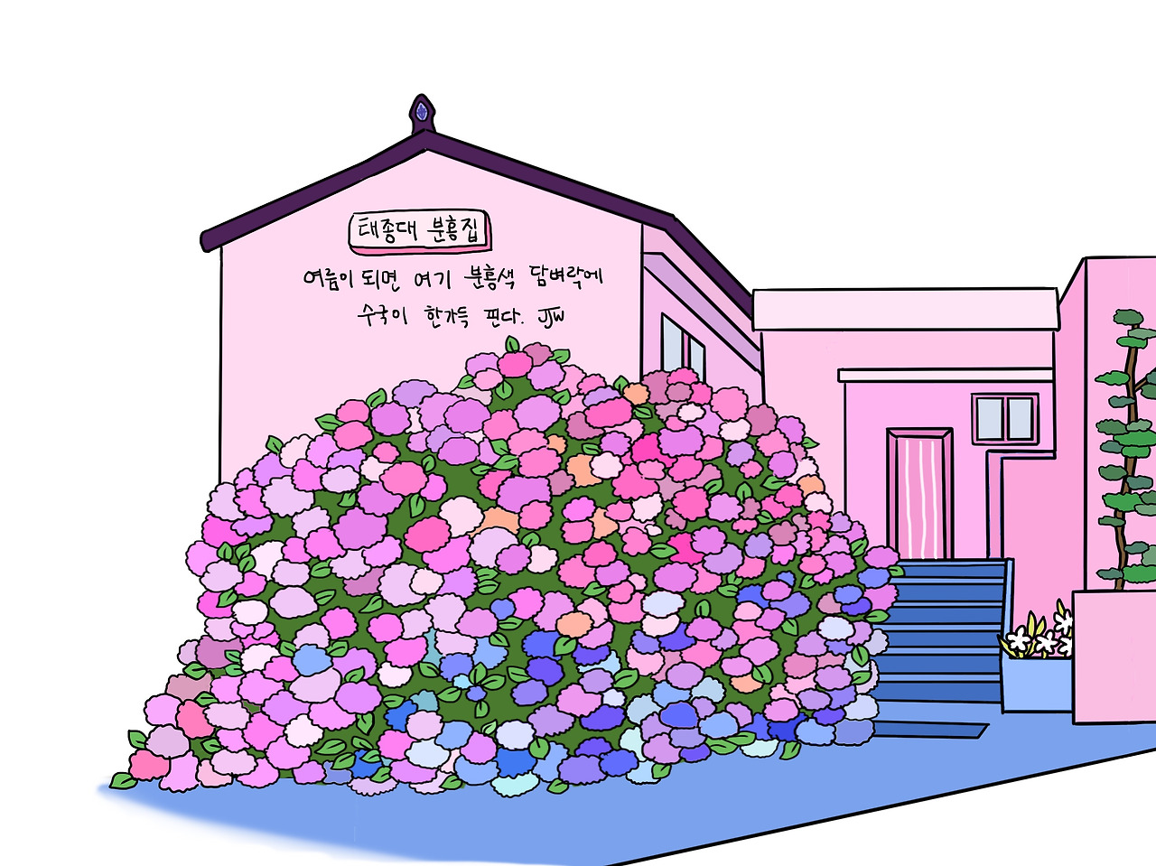 수국이 피는 계절이라 가는 길 곳곳 색색의 수국들이 피어있었다.