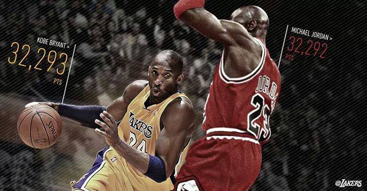 비록 통산득점이라는 한 가지 레퍼런스 뿐이지만 (또 하나, 조던이 가지지 못한 코비의 기록이 있는데, 한경기 최다득점으로 역대 2위 81득점 의 기록을 가지고 있다. 1위는 윌트 체임벌린의 100점)