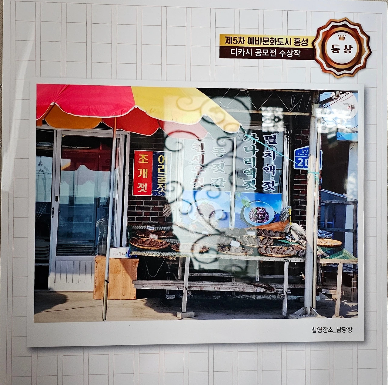 그도 그럴 것이 집콕인 세대주가 티브이 옆에 세워놓은 '문화도시 홍성' 디카시 수상작 액자 속에 쓰인 '남당항'이 나오니 반가움에 소리친 것이다. 우리 마누라가 찍은 사진 속 그 가게가 나온 것이다.