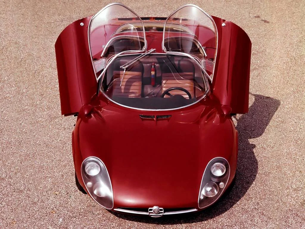 기존의 그룹 6 출전에 이어 그룹 4 레이스에 참가하기 위해 출전 모델을 최소 50대 생산해야 했던 새로운 규정 충족을 위해, 최소한으로 양산하여 프로토타입 두 대를 포함한 총 생산량이 18대에 불과한 수작입니다. 단순 룰을 충족하기 위해서만 만든 것이 아니라, 당시 티포 33으로 레이싱에서 두각을 나타내던 알파 로메오였기에 고성능의 소형 스포츠카를 양산하고자 했던 당시의 CEO인 주세페 루라기의 야망이 담긴 모델이기도 합니다. 엔진 및 구동체계는 레이싱 모델의 것을 그대로 가져왔으며 차체의 디자인은 알파 로메오 줄리에타 스프린트와 B.A.T 등 에어로 다이나믹을 활용해 아름다운 조형으로 디자인한 것으로 유명한 프랑코 스칼리오네가 맡아 유려한 라인을 만들어냈습니다.