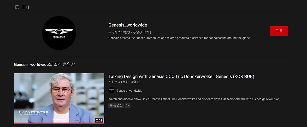가장 최근에 출시된 2세대 G90을 통해 '두 줄 그래픽'으로 상징할 수 있는 디자인 언어를 모든 라인업에 정착한 제네시스가 브랜드의 크리에이티브 최고 책임자 (COO) 역할을 맡은 세계적인 디자이너 루크 동커볼케와의 디자인 토크를 12월 3일 유튜브 채널에 게시했습니다.