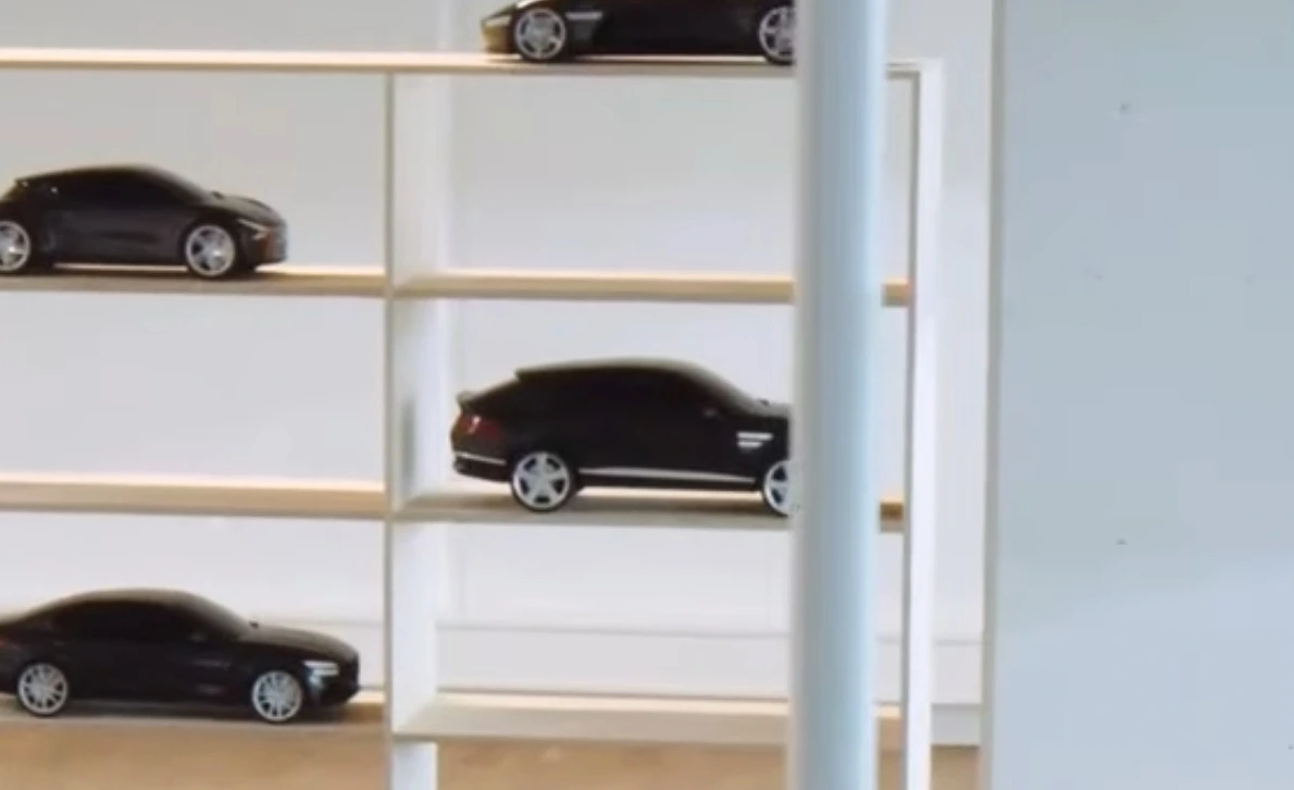 장식장에 제네시스의 현 라인업과 컨셉트카들의 모형이 놓여져 있는데, 루머로만 언급되던 GV80의 쿠페형 모델을 영상에 처음으로 드러냈습니다. 점점 커지는 SUV 시장을 다양하게 공략하기 위한 모델로 이야기로만 떠돌던 GV80 쿠페를 제네시스에서 비공식적으로나마 직접 선보였습니다.