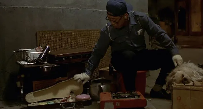 여전히 고윤주는 얄미운 인물이지만 개를 찾아 나서며 고생을 하는 이 지점부터 고윤주가 조금은 측은하게 보이기 시작하고, 관객은 스스로를 고윤주와 동일시한다. 관객은 이미 두 차례 개로 탕을 끓인 경비원이 야채를 사서 지하실로 향하는 것을 보고 고윤주네 개를 먹으려 하는 걸로 의심하고, 옥상에서 고윤주네 개를 잡아먹으려 하는 노숙자에게 불편한 눈길을 보낸다. 카메라 너머의 방역 연기는 고윤주가 개를 잊어버리게끔 하는 원인이자 스크린 너머 관객의 인식을 전환시키는 전도의 역할을 한다. 관객은 경비원, 노숙자, 관리소 여직원, 문구점 여자와 같이 무고한 사람이 아니라, 악인인 고윤주에게 이입하게 된다.