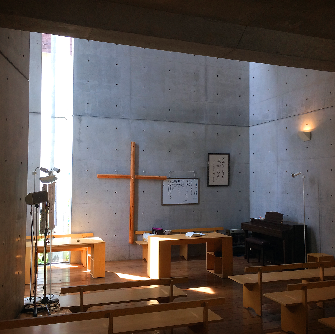 빛의 교회는 아주 조용한 마을에 위치해 있었다. 정말 일본스러운(?) 마을들 사이에서 유난히 돋보이는 회색의 노출콘크리트 건물. 바로 빛의 교회이다. 이바라카역에서 자전거로 약 20~30분 정도 타고 가야 도착했던 거 같다. 일요일 오전이라 그런지 정말 조용하고 한가한 풍경이 아직도 기억에 남아있다. 조용한 마을에 들리는 건 자전거 페달 밟는 소리와 바람소리 정도? 그렇게 풍경을 들으며 드디어 빛의 교회에 도착했다.
