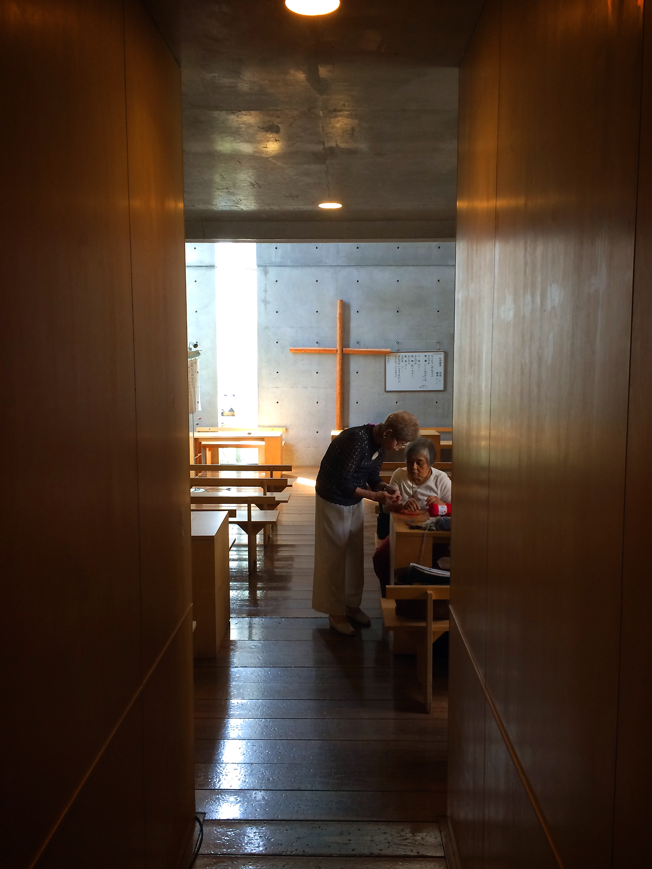 내부는 책에서 보고 상상했던 것보다 훨씬 작았다. 5명 정도 앉을 수 있는 기다란 나무 의자가 10줄정도 있고 정말이지 심플한 공간 구성까지. 그럼에도 불구하고 이 곳의 분위기는 정면에 보이는 십자가로인해 압도당한다. 개인적으로는 어떠한 종교도 믿고 있진 않지만 빛이 비치는 십자가를 보고 있자니 정말이지 축복받는 느낌이 들었다. 십자가 뿐만 아니다. 오른쪽 천정부분과 벽이 만나는 곳에 생긴 자그마한 틈을 통해 들어오는 빛은 또 다른 느낌이었다. 보면 볼 수록 ‘어떻게 이런 공간을 설계했지?’란 궁금증이 든다.