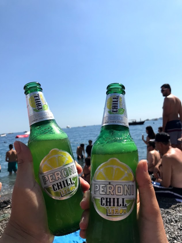 그리고 포지타노 해변에 도착했다. 한국인만 받으려고 작정한 건지 태극기를 건 기념품점에서 새콤한 레몬 맥주를 사고 딱 한 시간의 자유시간 동안, 뽕 뽑으려고 지중해에서 촉박하게 수영을 했다. 한 시간이 아니라 한 달을 머물러 가고 싶은 햇살과 그리스 신화의 여신 테티스가 바닷가에서 걸어 나올 것 같은 파도에서 하 얀색 파도 거품 같은 그녀와 놀다 보니 어느새 시간은 헤르메스처 럼 빠르게 지나갔다.