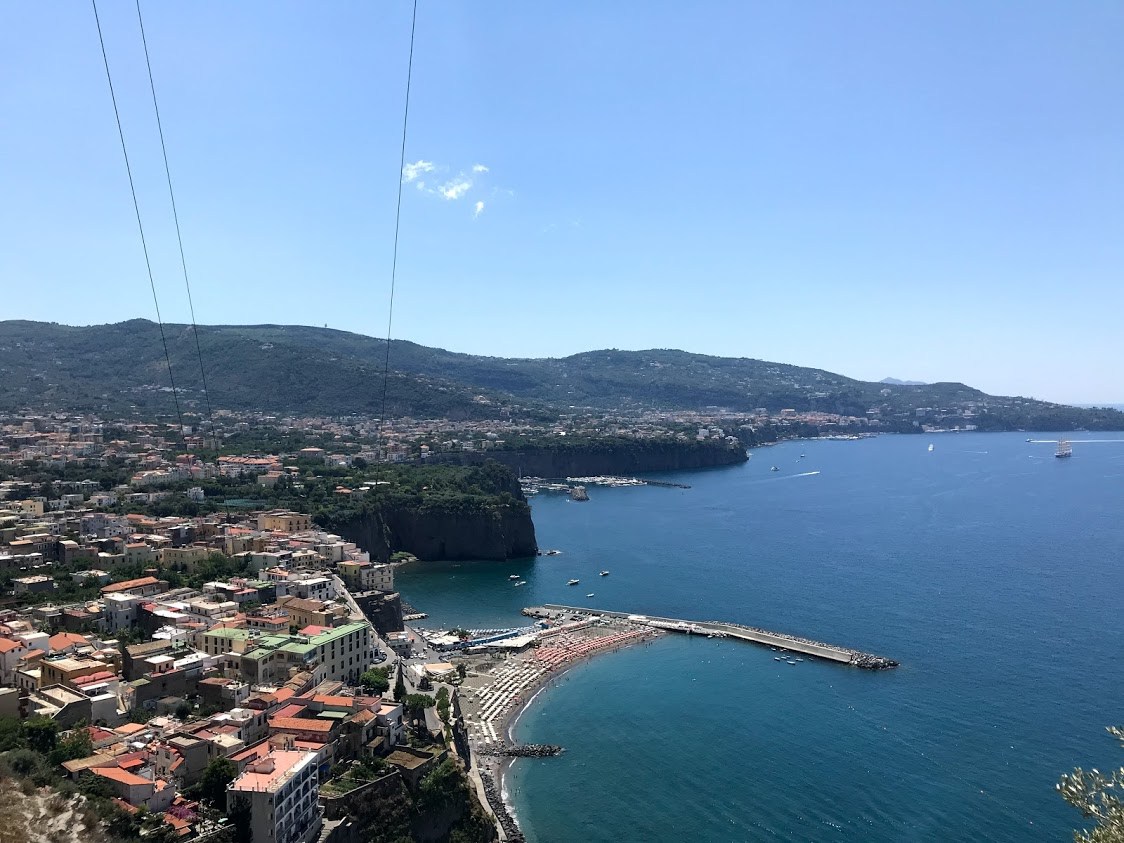 버스를 타고 계속 이동하며, 아말피 코스트와, 나폴리 등 지중 해 해안을 사람들 머리 너머로 봤다. 내가 바보 같이 해안가 쪽 좌 석이 아니라, 절벽 뷰 좌석에 앉았다. 가는 방향 기준 오른쪽 좌석 에 앉아야 해안가이다. 하지만, 남들은 밖에 보느라 정신없을 때, 나는 또 그녀의 어깨에 기대 두근 되느라 좋았다. 쏘렌토 전망대 에서 내리라는 가이드의 음성이 들리고, 잘 안보이던 지중해가 눈 앞에 펼쳐졌다. 따가운 태양 아래 눈을 뜰 수 없을 정도였지만, 쏘 렌토를 바라보며 활짝 웃던 그녀를 보느라 막상 파란 하늘의 쏘렌 토는 기억이 잘 나지 않는다.
