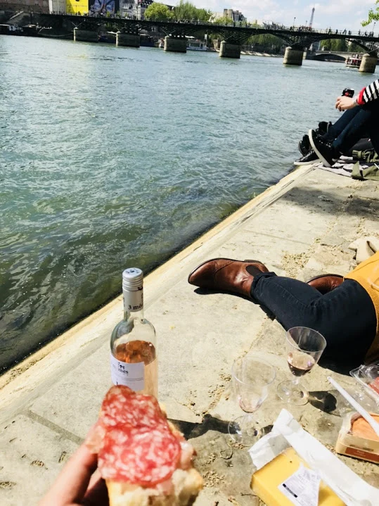 산은 커녕 구릉지조차 잘 없는 평탄한 파리에서, 몽마르트 언덕 은 서울의 남산 타워 같은 위상을 지니고 있다. 높고 햇살 좋은 계 단에 앉아 파리 시내의 전경을 바라볼 수 있어서 항상 사람 들로 가득하고, 거리의 음악가들도 가득하다. 몽마르뜨 언덕에서 내려 와 카페에 들려 커피를 한잔하고 마트에서 바게트와 치즈, 햄, 와 인을 사서 센 강 강가에 앉아가 가볍게 피크닉을 즐겼다. 파리의 따듯한 햇살과 흩날리는 나뭇잎, 흘러가는 강물. 파리의 시간은 도시에 있지만, 자연의 시간처럼 흘러 간다.