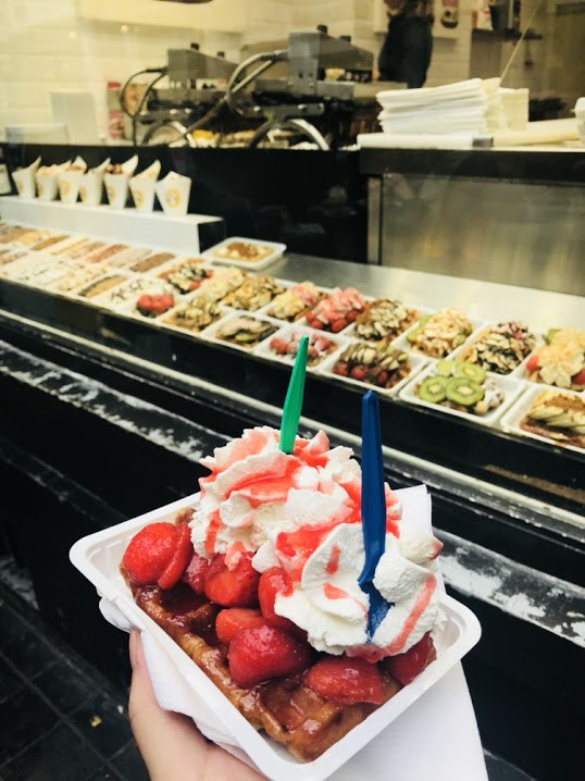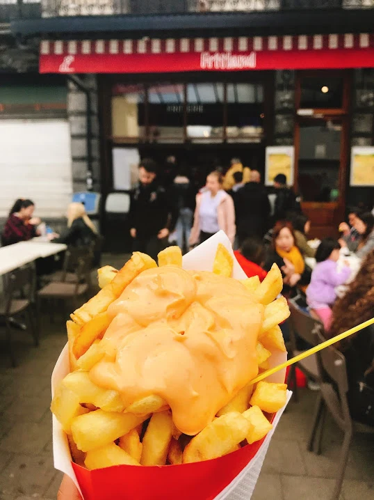 세상에서 제일 실망스러운 관광지 1위가 브뤼셀이라는 것이 틀 린 말이 아니다. 브뤼셀에서 가장 유명한 관광지는 저 조그마한 오줌싸개 동상이 끝이다. 이 곳을 중심으로 와플 가게나 기념품 가게가 붙어 있지만, 벨기에 건물들이 너무 다닥다닥 붙어 있고 길도 좁아 사진을 남기기도 어렵다. 와플로 유명한 벨기에이지만 현지의 와플이 특별히 맛이 다르지도 않고 벨기에 와플은 우리나 라에서도 파는 곳이 많다. 물론 특별한 소스와 함께 주는 두꺼운 감자튀김은 매우 맛있긴 하나 저런 감자 튀김은 중부 유럽 어디서 든 먹을 수 있다 .