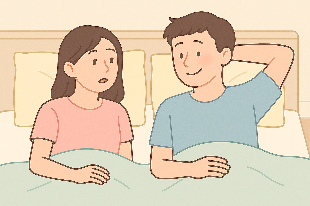 며칠 뒤, 나란히 침대에 누워 잠을 청하려 하는데 아내가 말했다.