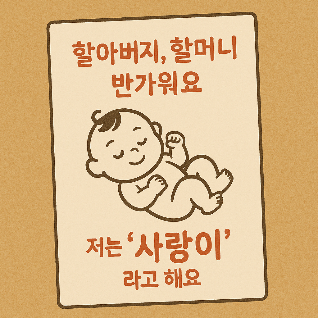 일주일이 채 지나지 않아 우리의 아가가 찾아온 사실을 알리기 위해 처가댁을 방문하기로 했다. 우리는 이 소식에 귀여운 서프라이즈와 초음파사진이 담긴 예쁜 엽서를 담아, 이 아이의 첫 소개 순간을 좀 더 아기자기하게 꾸미려고 했다. 아내가 준비한 엽서에는 ‘할아버지, 할머니 반가워요 저는 ‘사랑이’라고 해요’라고 적혀있었다.