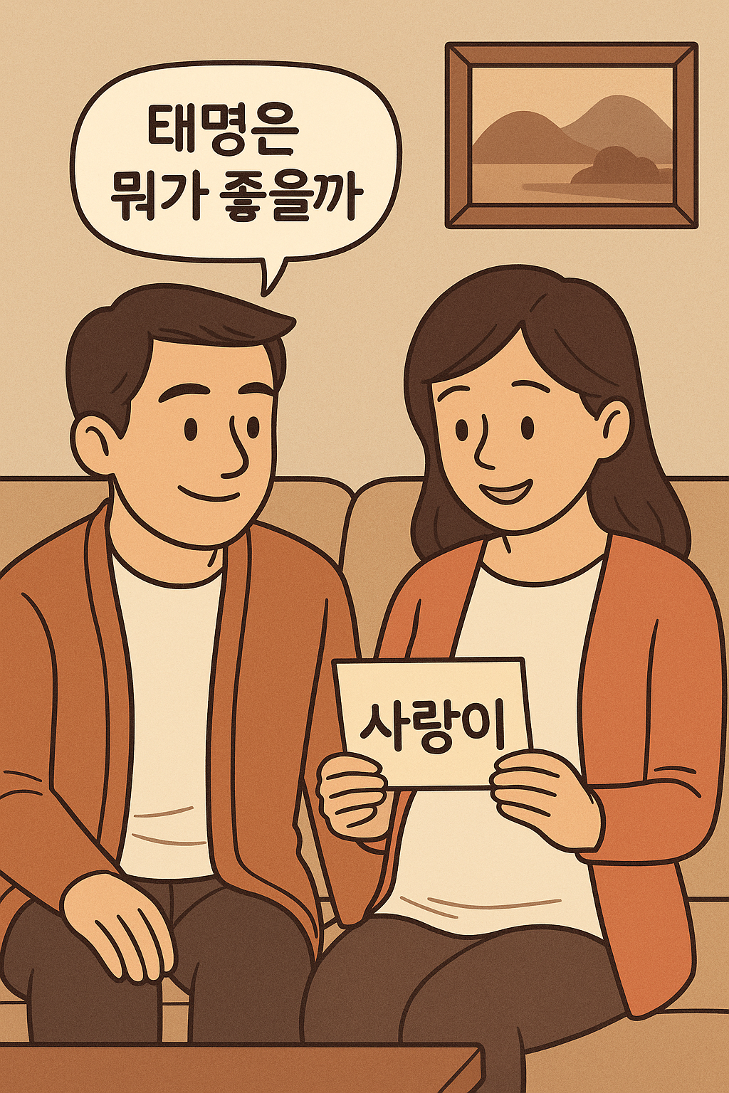 조리원, 병원, 보건소, 지원금 바우처 등등 빠르게 알아보고 결정해야 했던 것들을 한바탕 치르고 나서 아내와 나란히 소파에 앉았다. ‘이제 한숨 돌리겠네’라는 생각이 드는 순간 ‘아니지 여유 부리면 안돼’ 라는 생각이 함께 찾아왔다. 뭔가 중요한 정보를 놓치진 않을까, 자질구레한 지식이라도 그게 조금의 도움이 될 수 있다면 내가 가만있어선 안 되는 거라고 생각한 것이다. 그때 불현듯 생각난 것이 바로 ‘태명’이었다.