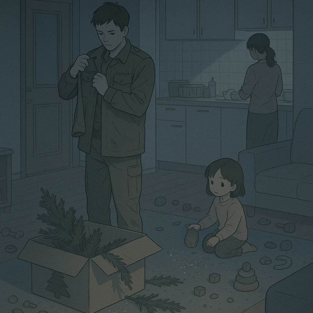 내가 말하자 아내는 짧게 고개를 끄덕였다. 기대인지 체념인지 모를 움직임이었다. 아이는 어느새 식탁에서 내려와 내 바짓단을 잡아끌다가 금방 장난감으로 관심이 옮겨갔다. 고사리 같은 작은 손으로 반짝이를 긁어모았다. 트리 상자는 우리 셋의 그림자 사이에서 유난히 커 보였다.