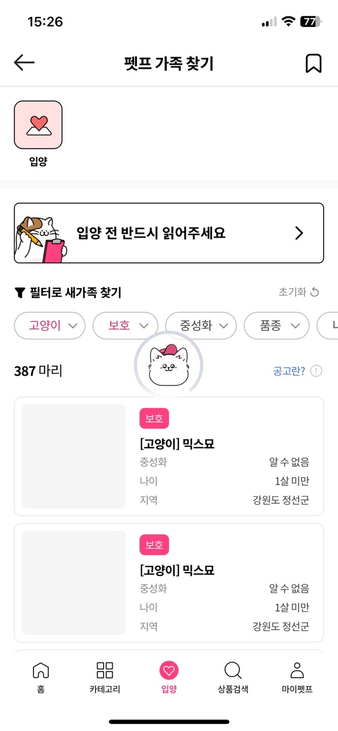 반려동물 하면 생각나는 '귀엽다'라는 대표적인 이미지를 전반적으로 잘 녹여낸 느낌을 받았다. 아이콘은 물론 UX writing에서 반려동물만을 위한 서비스임을 대대적으로 나타내고 있다. 입양 메뉴가 추가되어 단순 커머스 서비스가 아니게 되었는 데, 아직은 메뉴 추가 외에 별다른 차이가 없어 추후에 어떻게 변화할지 궁금하다.