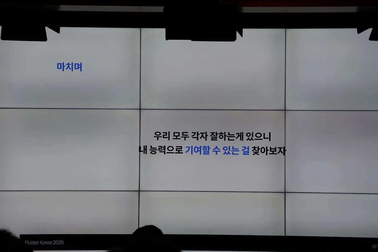 lottie에서 thorvg.flutter로 전환하며 오픈소스기여에 대한 경험을 나누어주신 권태형 님은 thorvg를 flutter에서 사용하게 기여하셨다는 사실보다 기여하시면서 얻은 인사이트나 회고에 대한 내용이 너무 값졌다. 나는 오픈소스 기여 자체가 전 세계 불특정다수에게 내 코드를 평가받는다는 부담을 안고 가는 일이라고 생각해서 ‘여러분도 할 수 있다.’라던가 ‘이렇게 시도해 보실 수 있다.’라는 응원의 이야기를 전달해 주시는 점이 너무 감사했다.
