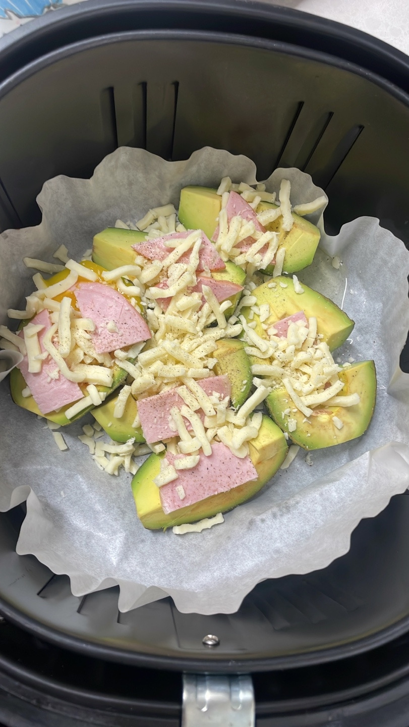 2 아보카도의 씨앗 제거, 반으로 잘랐으면 씨앗자리에 계란을 까서 노른자만 넣어준다. 그리고 그 위에 소금, 후추, 모짜렐라 치즈를 올리면 끝.. 초간단 15분컷 아보카도 OO구이가 완성된다. 나는 아보카도를 잘못잘라서 조각조각이 났다.(속상ㅠㅠ 완전체로 만들고 싶었는데..) 피자빵 느낌을 내고 싶어서 베이컨도 올렸다. 내가 올리고 싶은거 다올리면 된다. 각자의 냉장고 사정에 따라 토핑은 자유롭게~! 여기서 15분 에어프라이어에 160도 ~180도 사이 구워주면 끝.. 나는 후숙이 안되서 15분을 했지만 후숙된거라면 10분 정도도 가능하지 않을까 싶다.