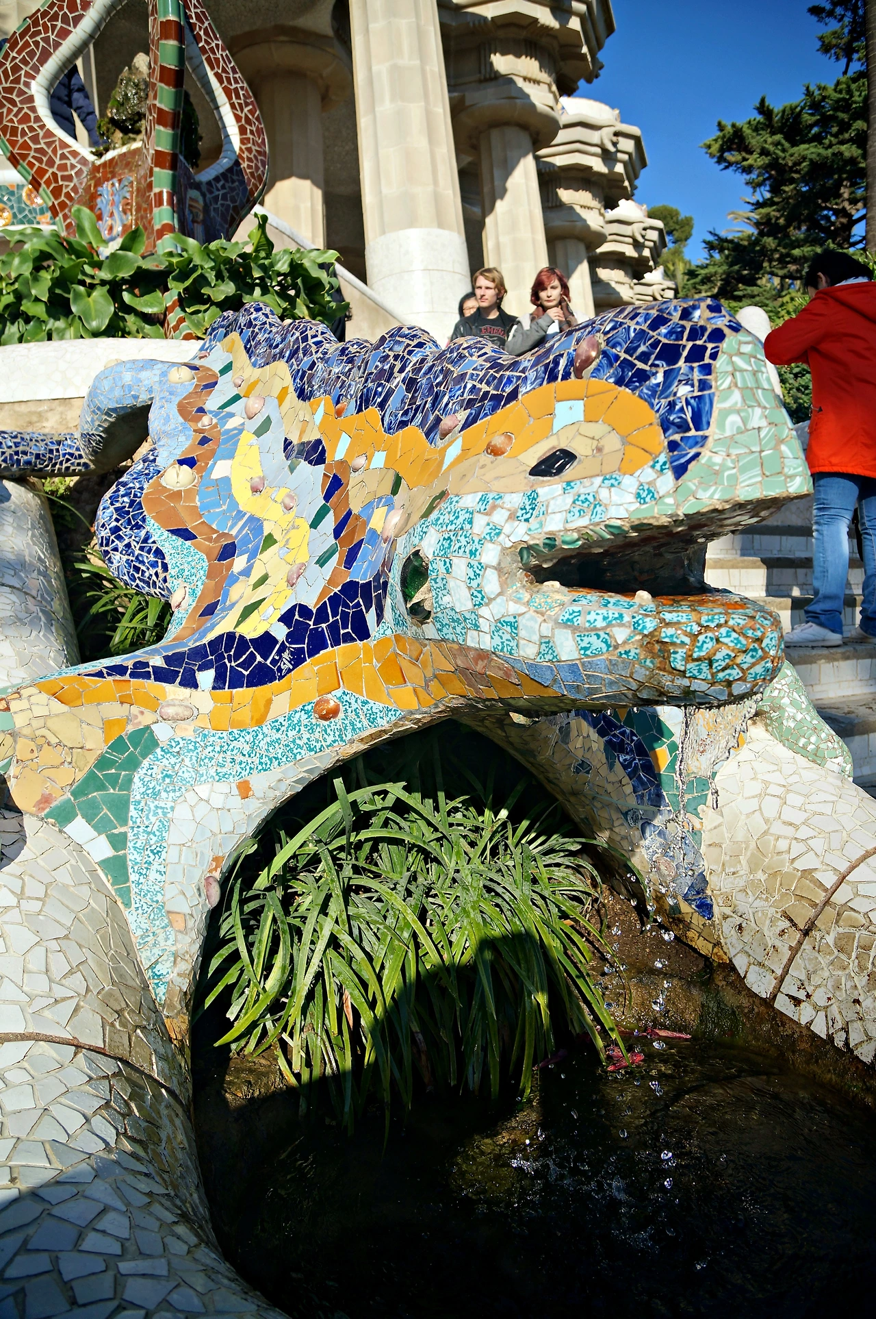 일명 ‘도마뱀’이라고 불리는 구엘 공원의 분수. 지하 물탱크가 가득 차면 바로 이 ‘도마뱀’의 입에서 물이 나온다. ‘도마뱀’은 단순한 장식이 아니라 배수 시스템의 일부다.