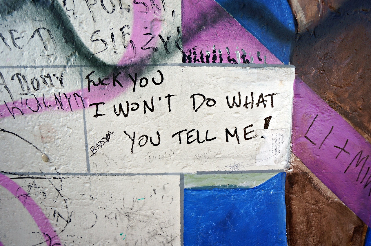 베를린 장벽은 현재 철거됐지만 이스트 사이드 갤러리엔 아직 장벽의 흔적이 남아있다. 이스트 사이드 갤러리란 이름은 슈프레 강을 따라 강변을 두르고 있던 장벽에 세계 각국의 미술가들이 세계 평화를 기원하며 각종 그림을 채워 넣은 데서 유래했다. 이스트 사이드 갤러리를 따라 천천히 거니는데, 세계 각국의 언어로 적힌 낙서 가운데 다음과 같은 문장이 눈에 들어왔다. “FUCK YOU. I WON’T DO WHAT YOU TELL ME!(엿이나 먹어. 난 네가 하란 대로 하진 않을 거야!)” 미국의 록 밴드 ‘레이지 어게인스트 더 머신’의 노래 ‘Killing in the name’의 가사였다. 적힌 지 꽤나 오래된 듯한 그 영어 낙서를 들여다보며… 자유란 개념이 어쩌면 이리도 간단한 것일 수 있겠구나… 하는 생각을 했다.