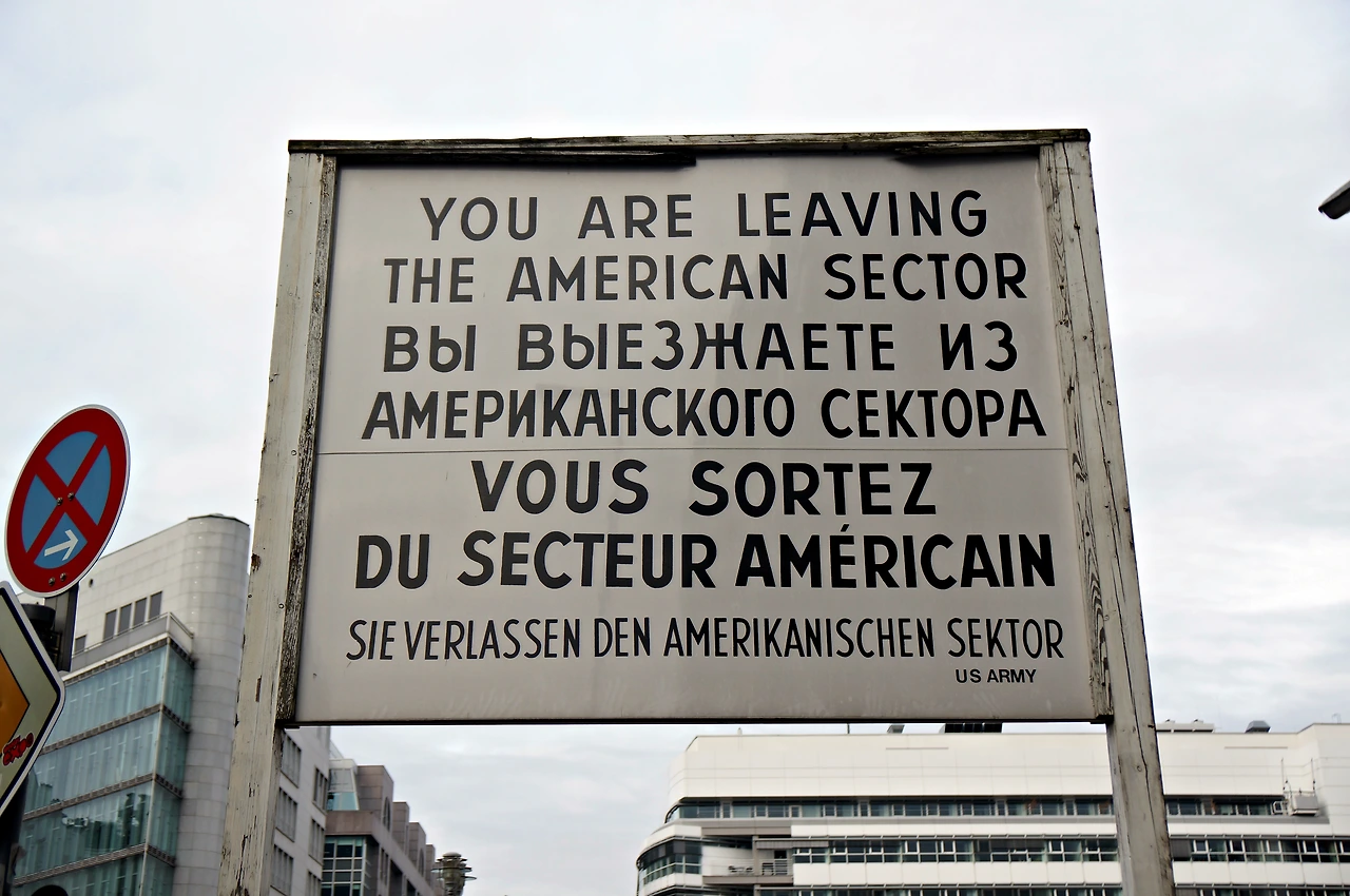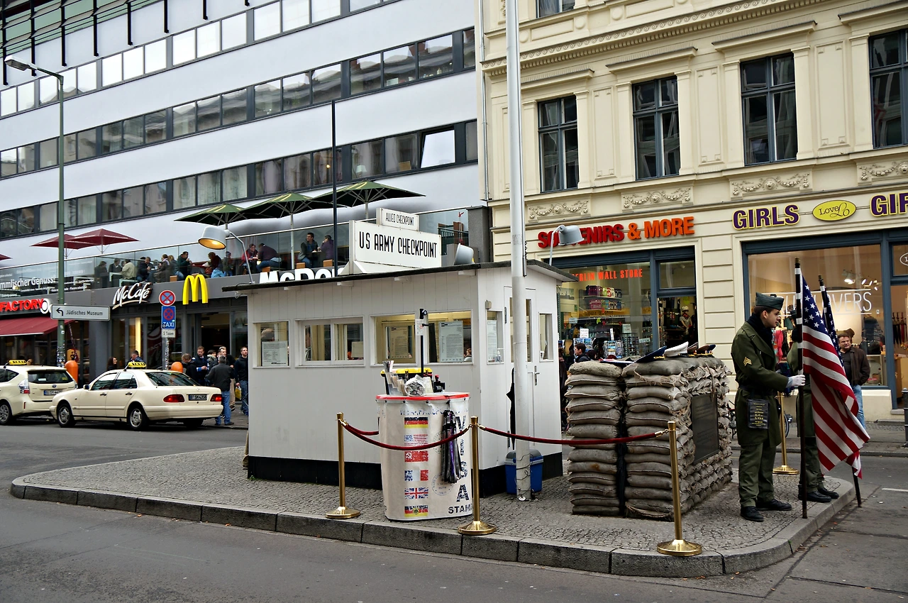 독일 분단의 흔적. 체크포인트 찰리와 체크포인트 찰리에 서 있는 표지판