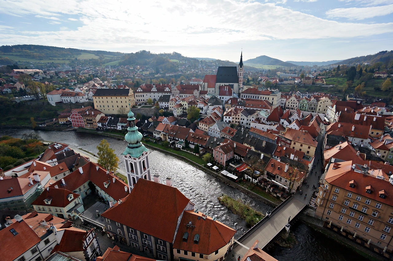 체스키크룸로프 성 꼭대기에서 바라본 마을 전경. 사진 우측 하단에 보이는 다리가 ‘이발사의 다리’다.