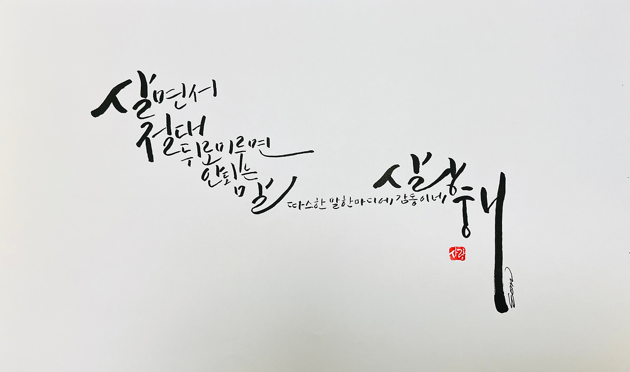 육체적으로 건강을 유지하는 것도 중요하지만 정신적으로 평안을 가져주는 그런 취미를 갖고 싶다. 최근에 배운 수채 캘리그래피를 계속 배우고 익히고 싶다. 은퇴 후에는 더욱 집중적으로 배우련다. 일단 시간이 잘 간다. 그림을 그리고 글씨를 쓰는 순간에는 모든 걸 잊어버린다. 그 결과물을 친구나 지인에게 선물할 수 있어 더욱 좋다. 내가 평소에 좋아하는 글귀를 쓰고 마음에 담아서 주면 받는 사람도 기뻐한다. 상대가 기뻐하면 나 또한 기쁨이 배가 된다.