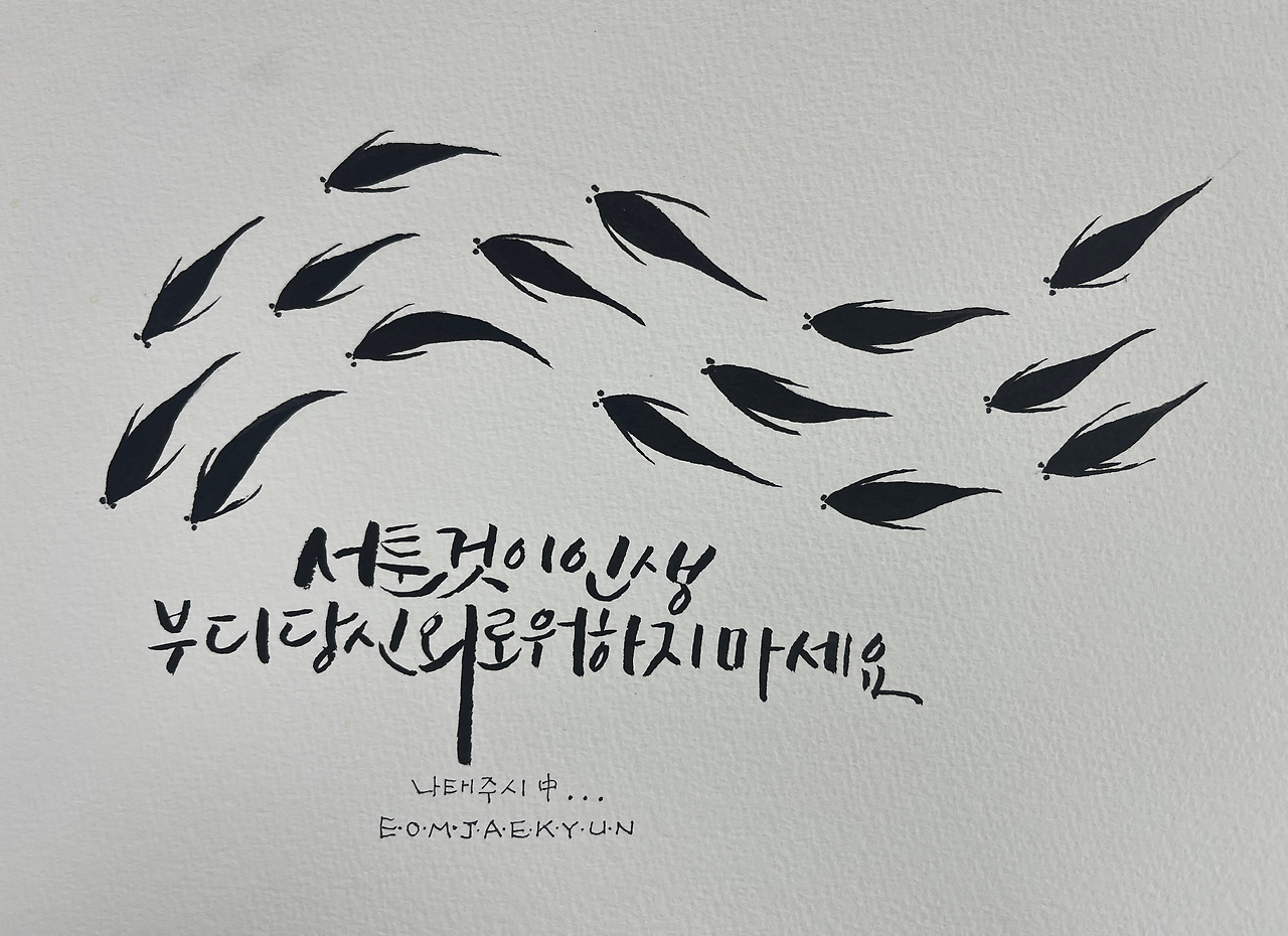 유튜브를 검색하니 독학이 가능할 것 같아서 캐나다에 살고 있는 교포가 운영하는 레슨을 신청하고 교재를 구입했다. 그리고 약 3개월이 지났을까? 2021년 1월 9일, 15회 차 영상을 본 기록이 교재에 아직도 선명하게 남아있지만 그 이후에는 흔적이 없다. 혼자 유튜브 영상을 보면서 약 3개월 동안 연습하면서도 바쁘다는 이유로 설렁설렁하다가 점차 손을 놓으면서 결국 다시 포기하고 말았다. 슬럼프에서 빠져 헤어 나오지 못하고 주저앉아버렸다.