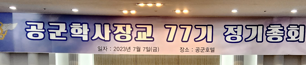 금요일 오후, 지난 기억을 서로 나누다 보니 차가 막혀 시간이 더 걸리는 줄도 모르게 목적지에 도착했다. 행사장인 공군호텔 2층에 올라가니 접수하는 친구는 있는데 얼굴이 낯설었다. 접수대 팻말을 보니 공군학사장교 78기 40주년 기념..? 78기는 한 해 후배가수인데..? 오른쪽으로 고개를 돌리니 눈에 익은 친구가 동기들을 반갑게 맞이한다. 맞은편 홀에서 공군학사장교 77기 정기 총회를 하는 것이다. 77기에 의미를 부여하기 위해 7월 7일에 행사를 한다.