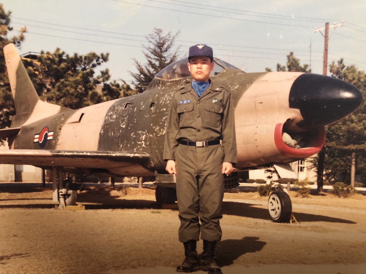 두꺼운 바지를 입고 헬멧을 쓰고 나니 몸이 무겁다. 공군사관후보생 시절의 군용 철모인 방탄 헬멧이 기억에 떠오른다. 갑자기 군인정신이 들어왔는지 모르지만 용기가 난다. 공군사관후보생으로 처음 대전 교욱사령부에 입교하고 신체와 체력검사를 받고 난 후 본격적으로 후보생 훈련을 하기 직전이었다. 전투기 앞에서 잔뜩 긴장하여 군기가 바짝 들어가 있지만 약간은 어설퍼 보인다.