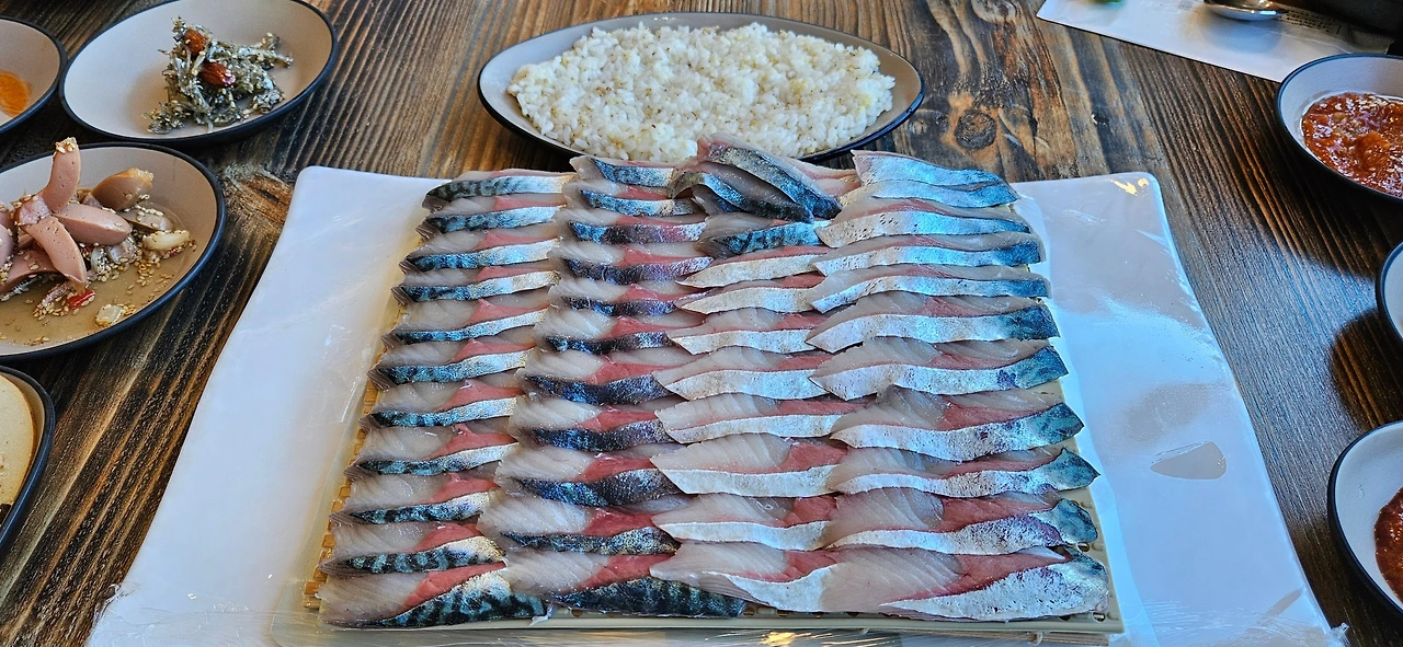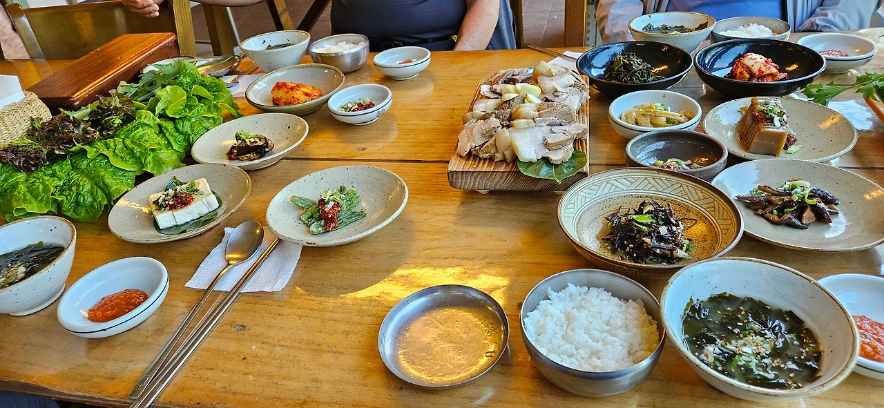운동하고 먹는 음식은 뭔들 맛없겠냐마는 황병장의 맛집 리스트에 있는 식당을 찾아다니며 갈치조림, 고등어회와 탕, 돔베고기와 고등어 구이가 포함된 쌈밥 등 카페에서 디저트까지 정말 잘 먹었다.