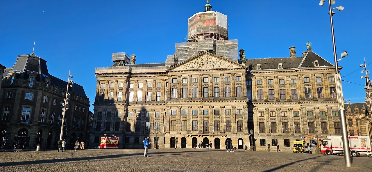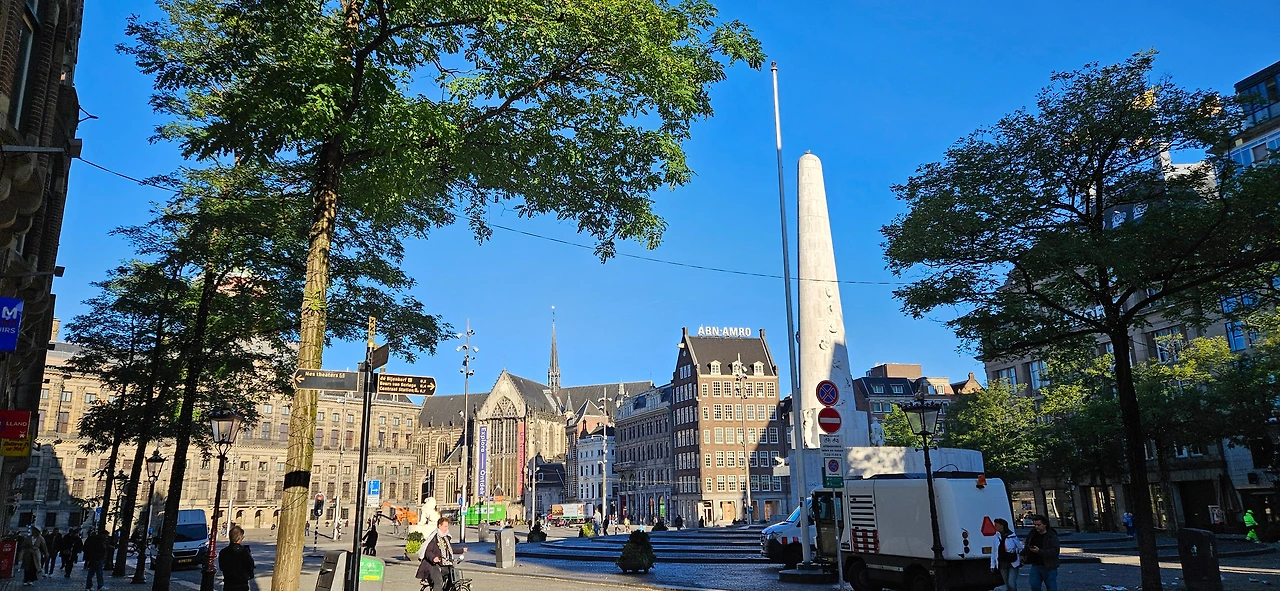담광장은 암스테르담의 심장으로 13세기 암스텔 강둑의 붕괴로 도시가 물에 잠기는 것을 막기 위해 만들었다는데 맞은편 2차 세계대전 희생자를 기리기 위해 건립했다는 22m 전쟁기념비에는 전쟁의 고통을 상징하는 조각상이 가슴에 와닿았다.