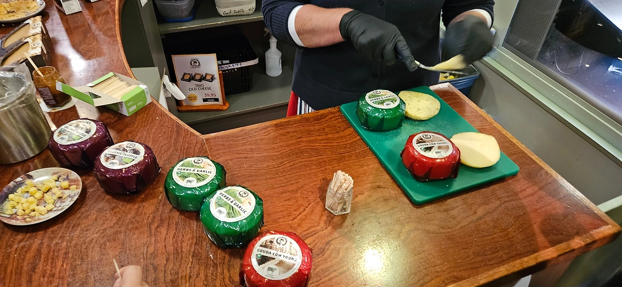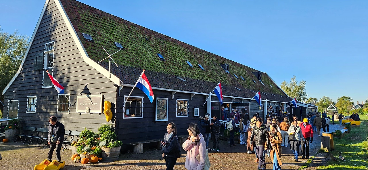 이어서 잔세스칸스를 방문하니 각국 여행객을 태운 버스가 주차장에 가득했다. 나막신 만드는 과정을 보고 치즈도 시식하고 풍차가 돌아가는