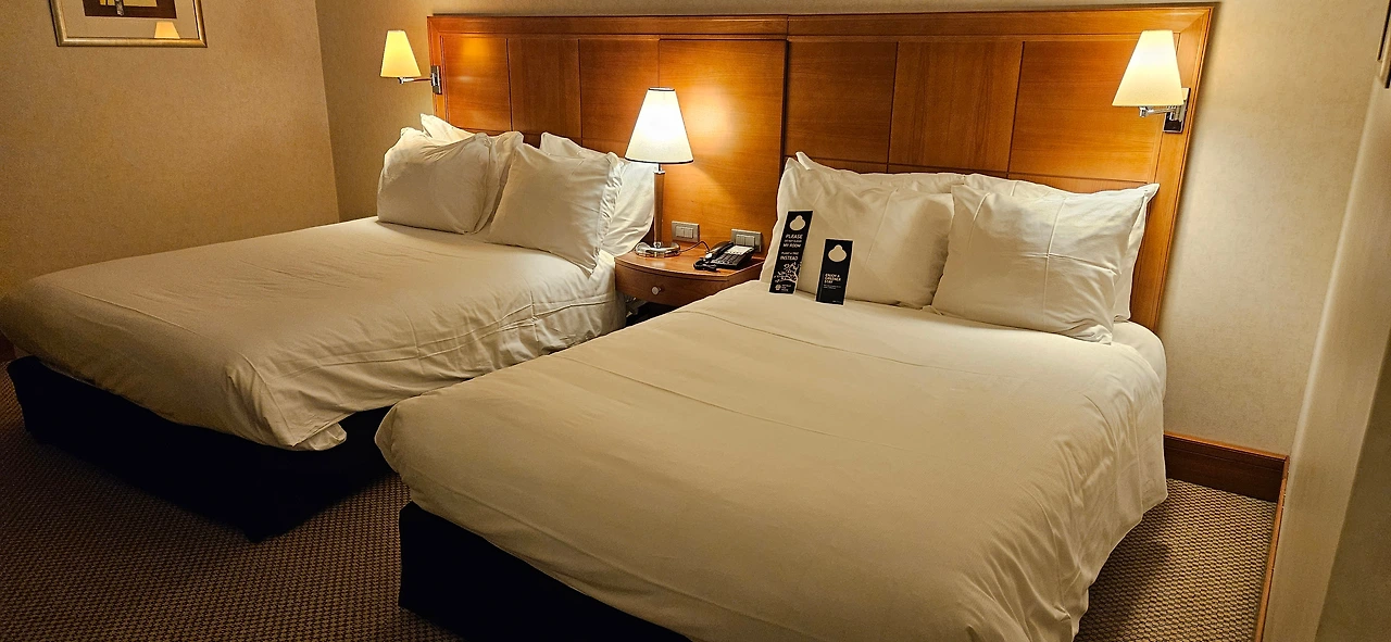 숙소는 크라운플라자호텔로 그동안 묵은 호텔 중 가장 럭셔리하고 방에 들어가니 침대 사이즈도 커서 잠이 잘 올 거 같은 분위기라 기분이 좋았다.