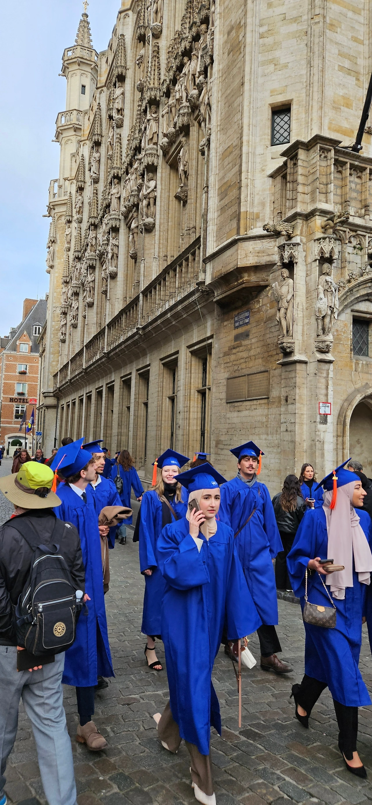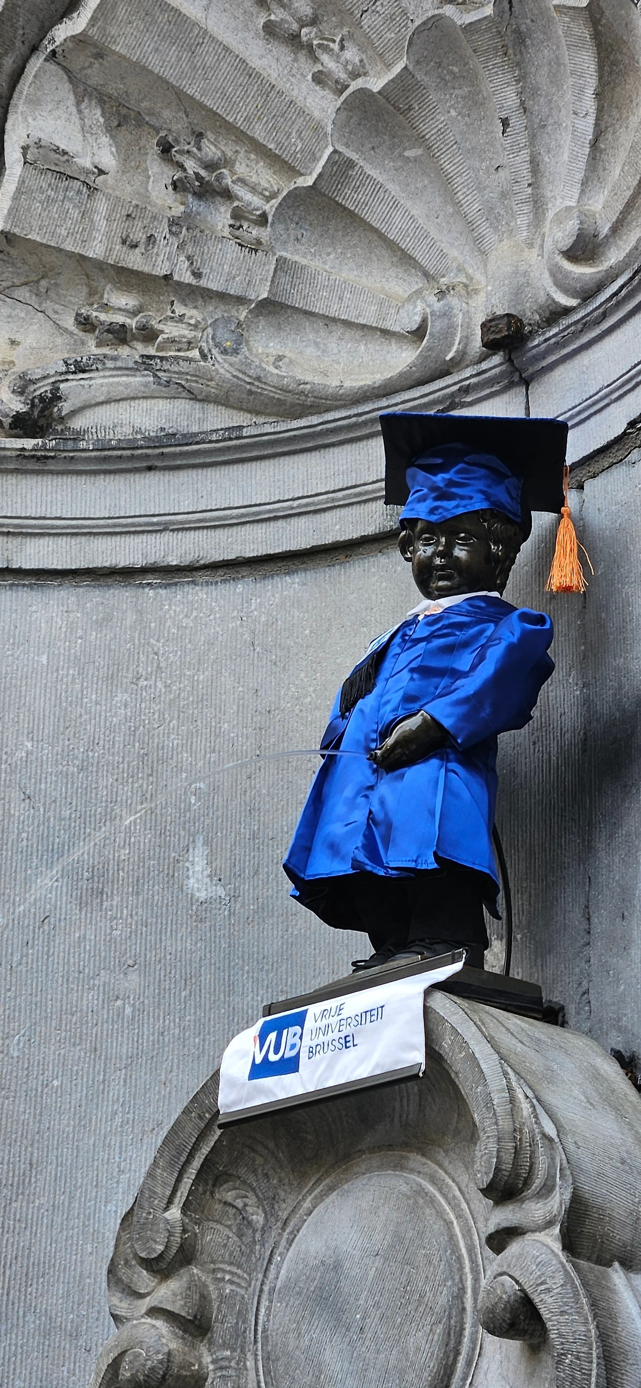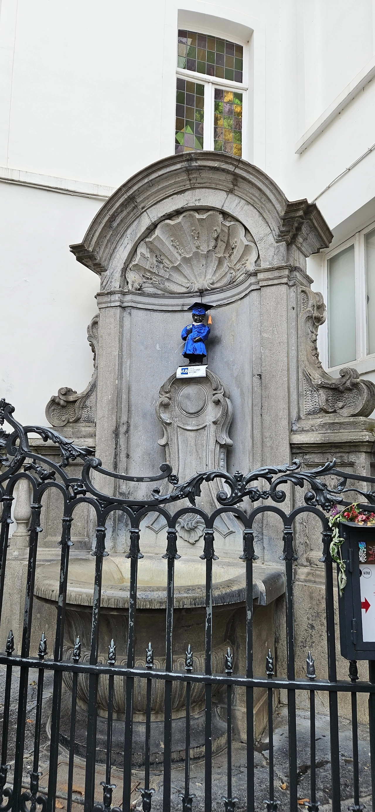 오늘은 광장에서 브뤼셀대학 졸업식이 있어서 그런지 사람들이 많았다. 1619년 조각가 제롬 뒤케누아에 의해 제작되어 브뤼셀을 대표하는 오줌싸개 동상에도 졸업가운이 입혀져 있어 재밌었다.